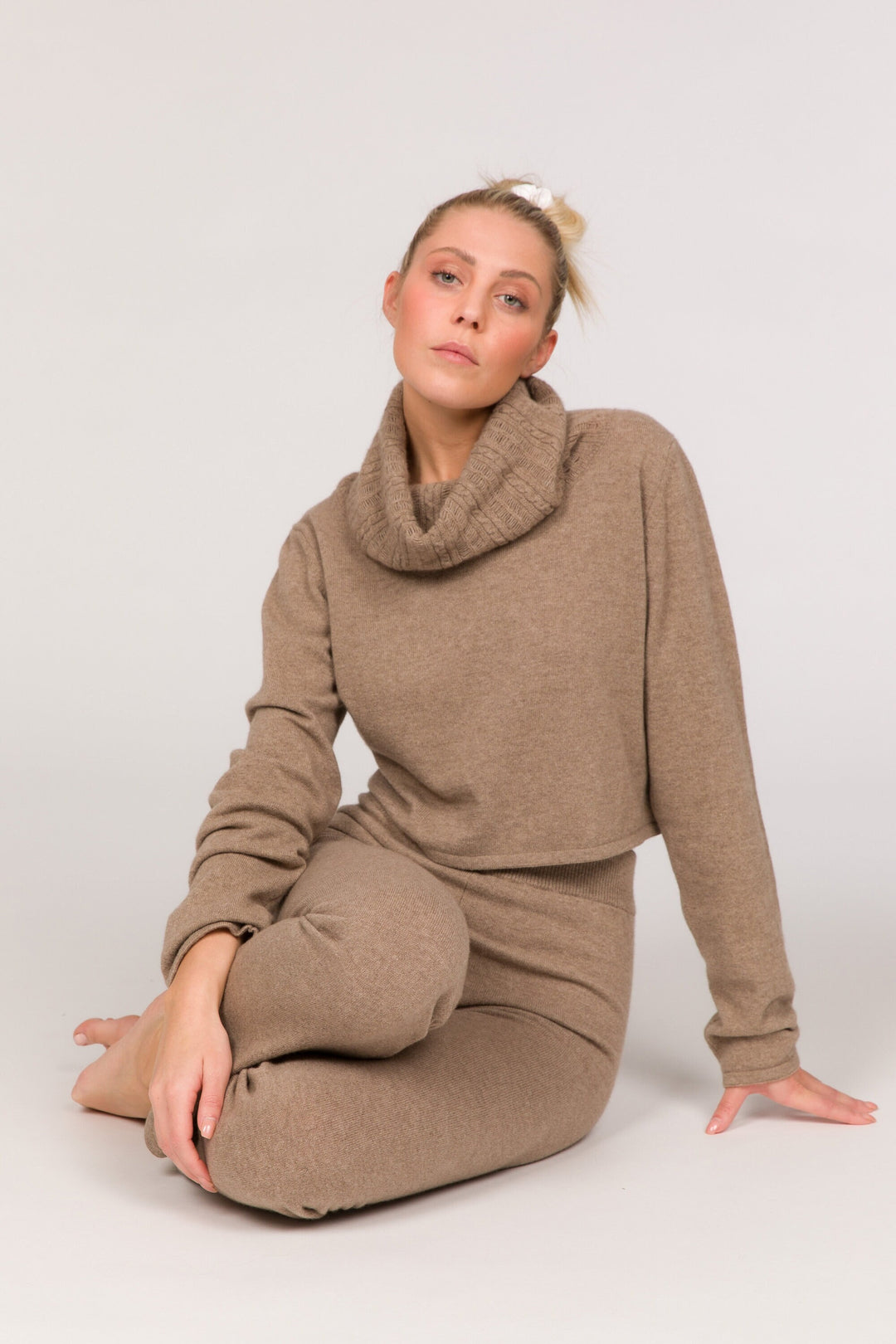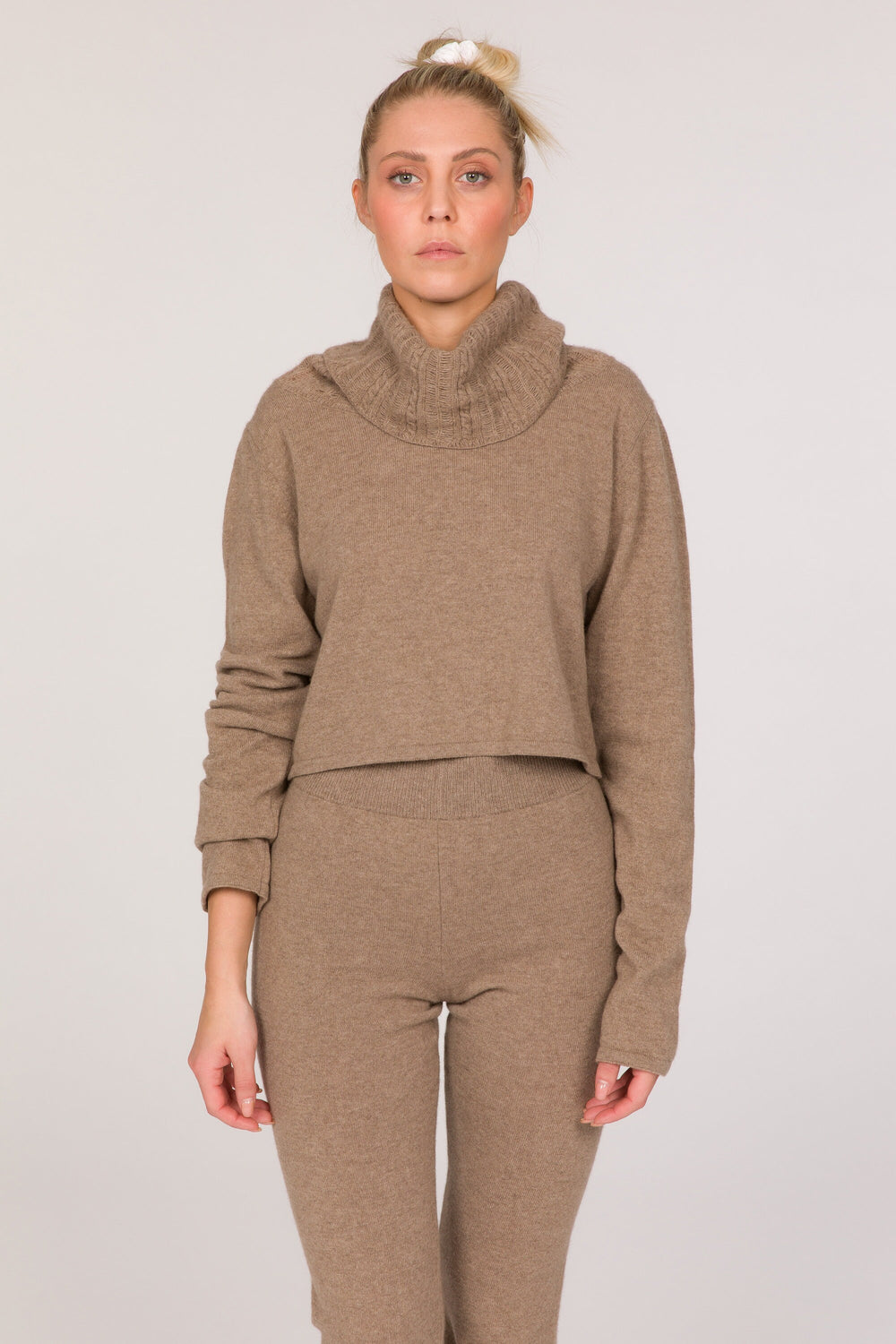 Swami Eco-Cashmere Turtleneck Crop Sweater - Dark Beige